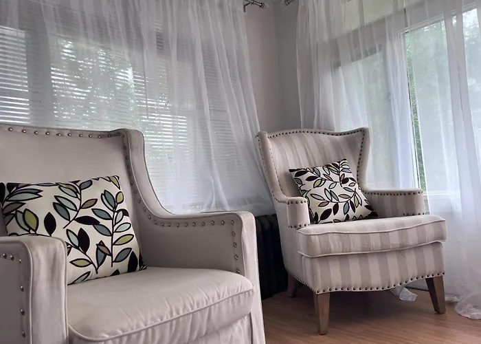 Charming 3 Bedroom Cottage Apartment In A Tudor-Style Home offre à ses clients un patio et un vestiaire, ainsi que des conforts modernes tels qu'une climatisation. La résidence comprend 3 chambres à coucher à coucher. Cet établissement dispose également de 1 salle de bains. De plus, vous trouverez une baignoire, une toilette séparée et une douche.